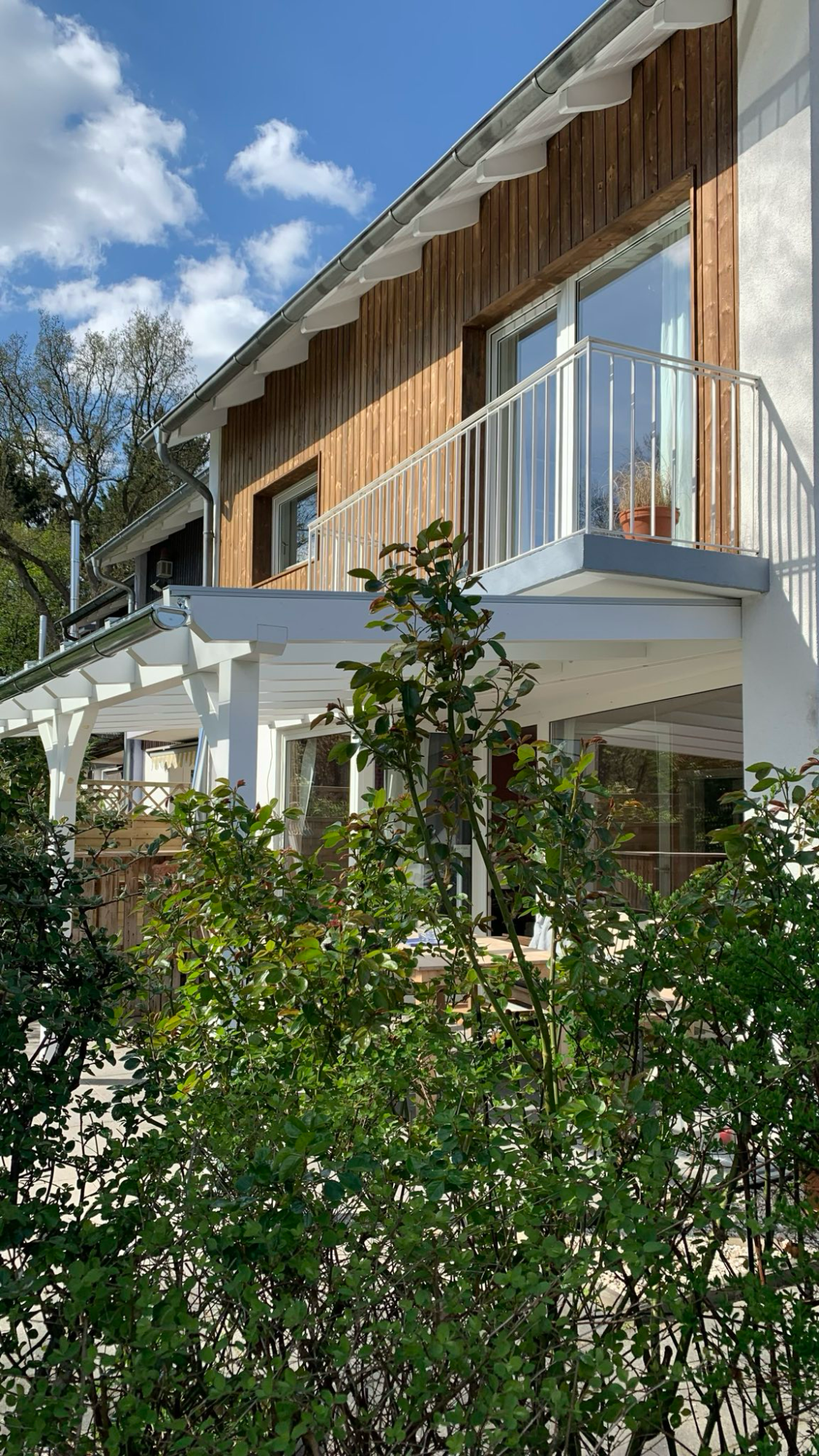 Klassische Boden-Deckel-Fassade, Rhombus-Profile oder gebranntes Holz nach Yakisugi-Art, jegliche Varianten sind realisierbar.